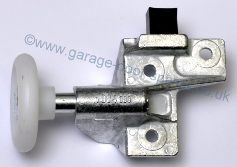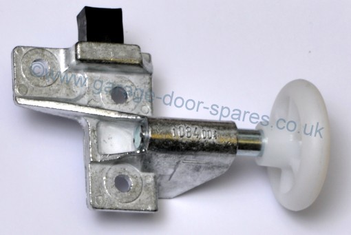 RH anti-drop roller & bracket assembly for Garador G3 and Hormann vertically tracked canopy doors manufactured since April 2002, these doors have one single overhead torsion spring and metal cable drums.