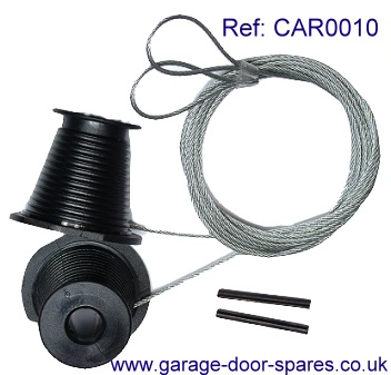 Pair of suspension cables & cones to suit canopy doors on Cardale 'CD45' type vertically tracked support gear produced from 1987 to 2001 click for details (these doors have the spring mounted across the frame header and tapered cones with distinctive hexagonal flats to suit a 22mm spanner) suits all door sizes.