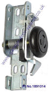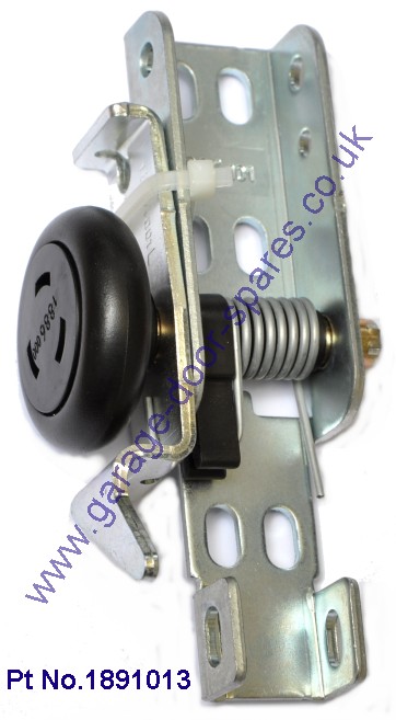 RH anti-drop roller & bracket assembly for Garador G3 and Hormann vertically tracked canopy doors manufactured since April 2002, these doors have one single overhead torsion spring and metal cable drums.